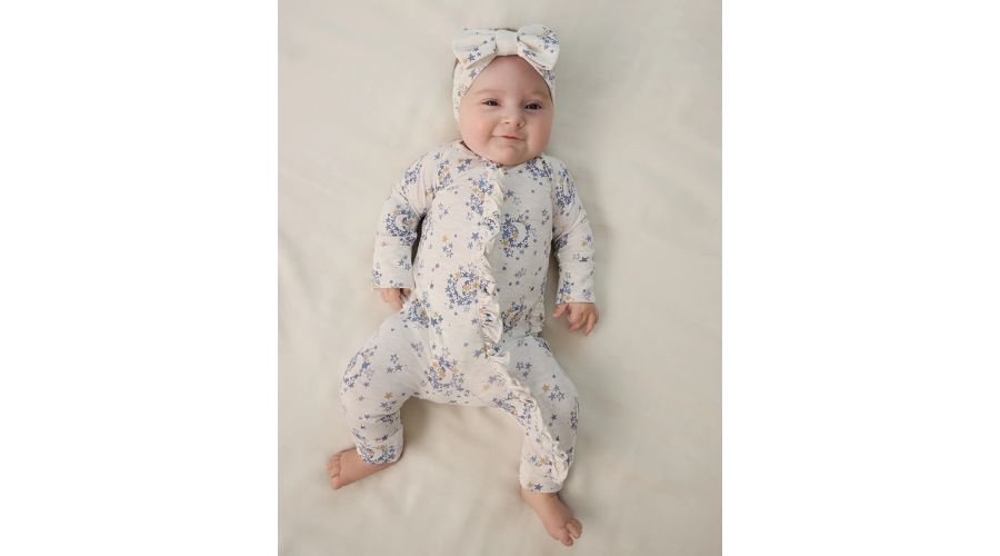 Dieses Produkt ist Teil der Neugeborenen-Kollektion von Little Sleepies. Wiegenliedhimmel Dieser hochwertige Baby-Schlafanzug mit Reißverschluss ist weich, atmungsaktiv und sanft zur zarten Haut. Die niedlichen Rüschen verleihen ihm eine verspielte Note – perfekt für Fotos oder besondere Anlässe. Dank des durchgehenden Reißverschlusses ist das Windelwechseln schnell und unkompliziert, während der Bambusstoff für angenehme Wärme sorgt, ohne aufzutragen. Leicht, strapazierfähig und weich – dieser hochwertige Baby-Schlafanzug mit Reißverschluss ist ein Favorit für Neugeborene und ein liebevolles Geschenk für frischgebackene Eltern.